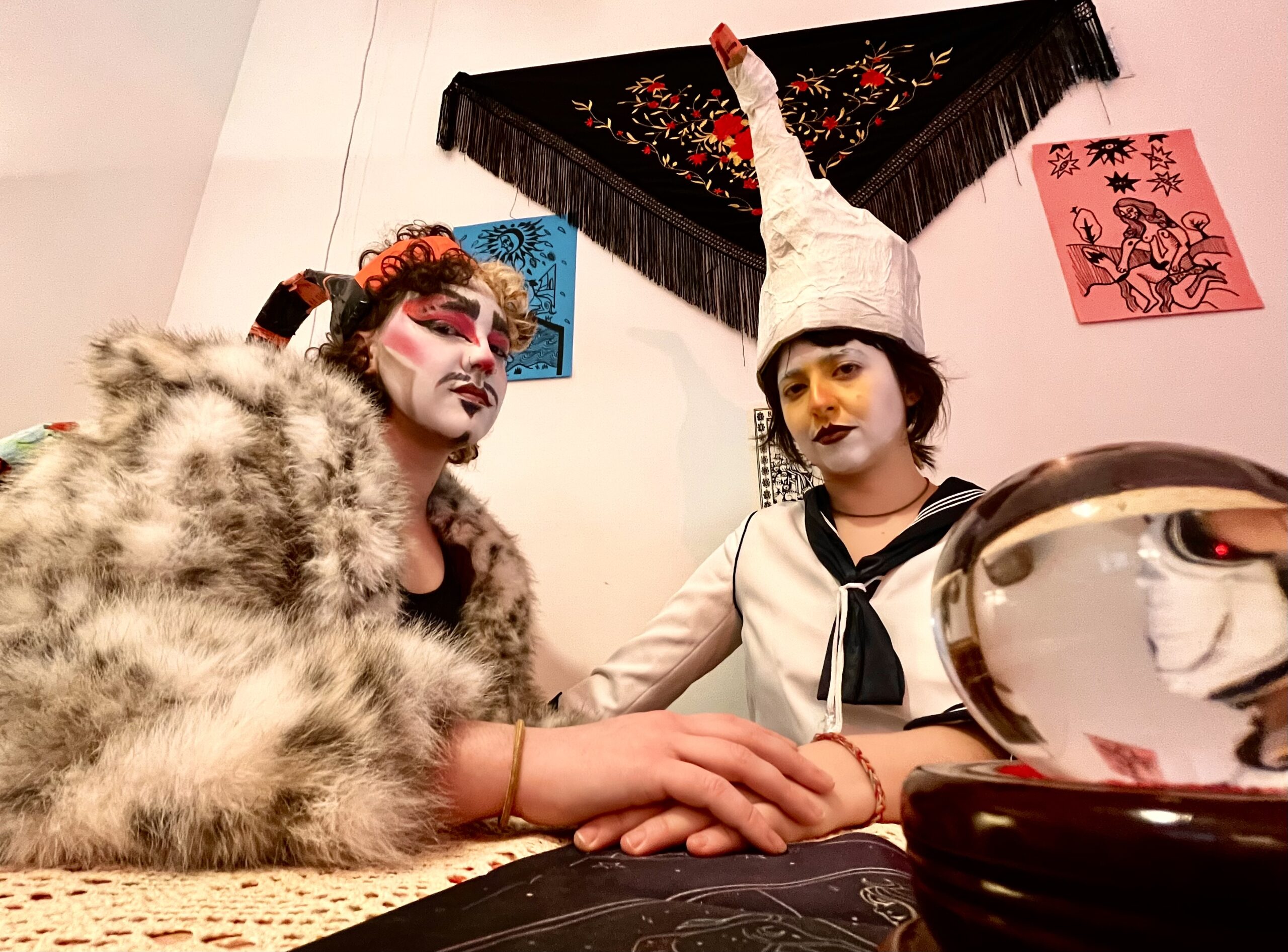 Desde una mezcla indisciplinada —literatura, lo plástico y aquello que nos mueve— buscamos el roce entre ficción y realidad, aun a riesgo de caer en el exceso, el recital o cierta cursilería. Así se forma un teatro-matiz: irregular y cambiante. Si queréis llamarlo un lugar de tránsito, o un espacio de cruising con unes diablilles, aceptamos la imagen sin demasiadas explicaciones.