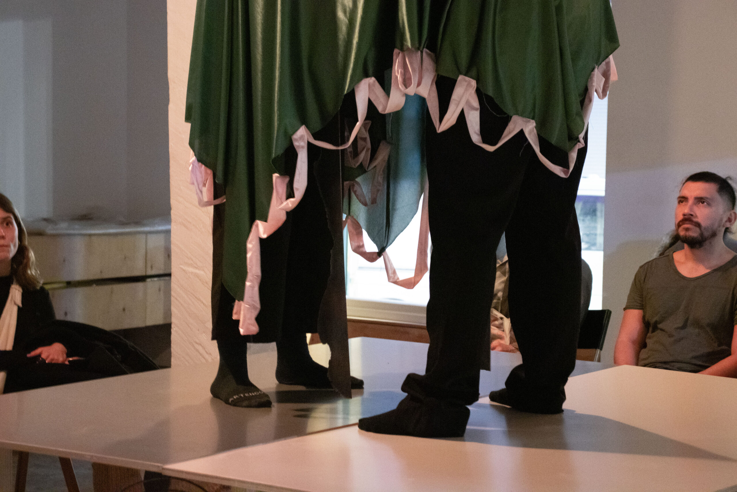 Desde una mezcla indisciplinada —literatura, lo plástico y aquello que nos mueve— buscamos el roce entre ficción y realidad, aun a riesgo de caer en el exceso, el recital o cierta cursilería. Así se forma un teatro-matiz: irregular y cambiante. Si queréis llamarlo un lugar de tránsito, o un espacio de cruising con unes diablilles, aceptamos la imagen sin demasiadas explicaciones.
