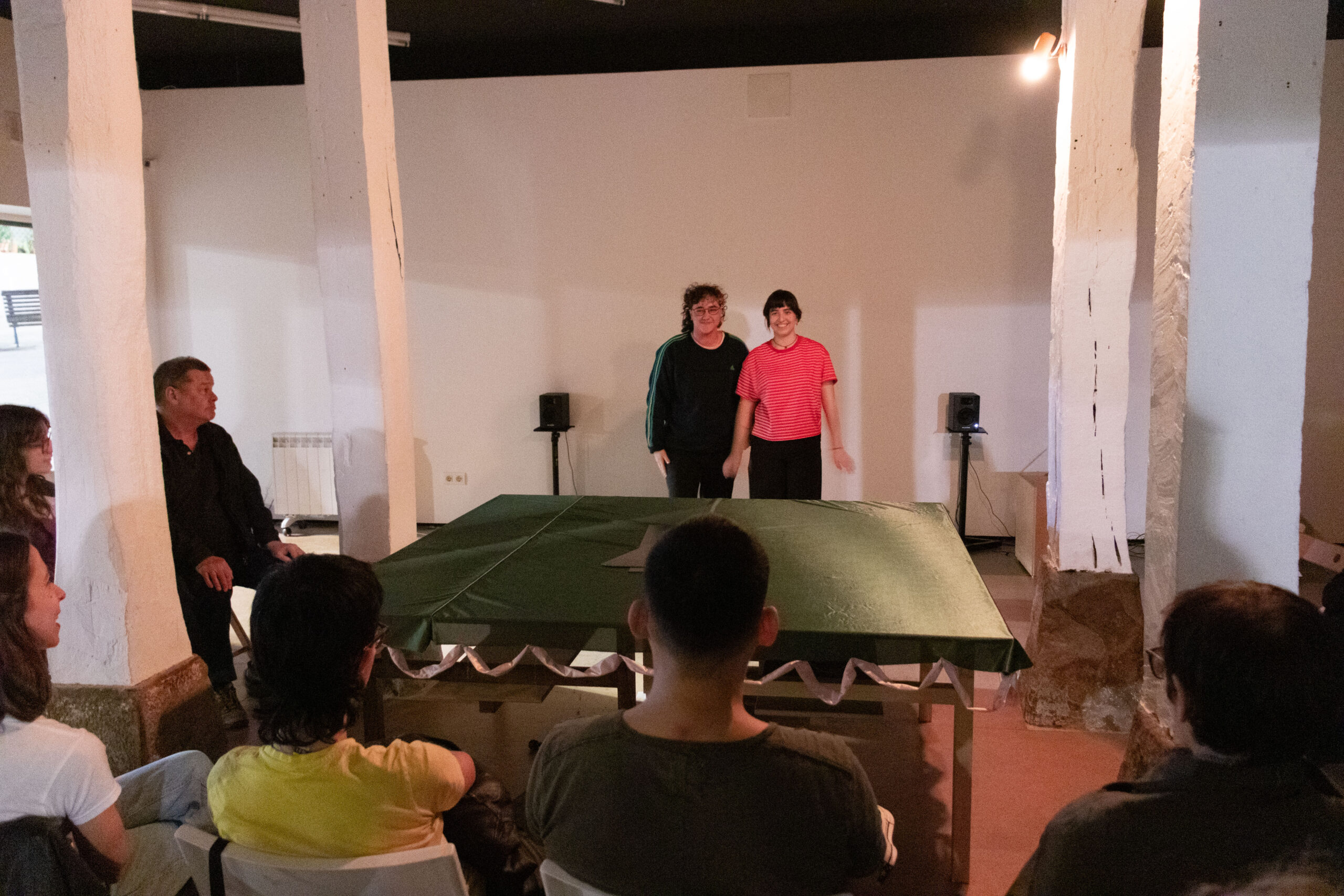 Perdonadnos si lo escénico no se deja atrapar. Todo ocurre en un lugar de ensayo: taller, ficción, refugio donde el tiempo se distrae. No aspiramos a saber del sol ni de los grandes mundos, basta con tantear ese pequeño mundo que sigue siendo extraño, incluso cuando creemos conocerlo.