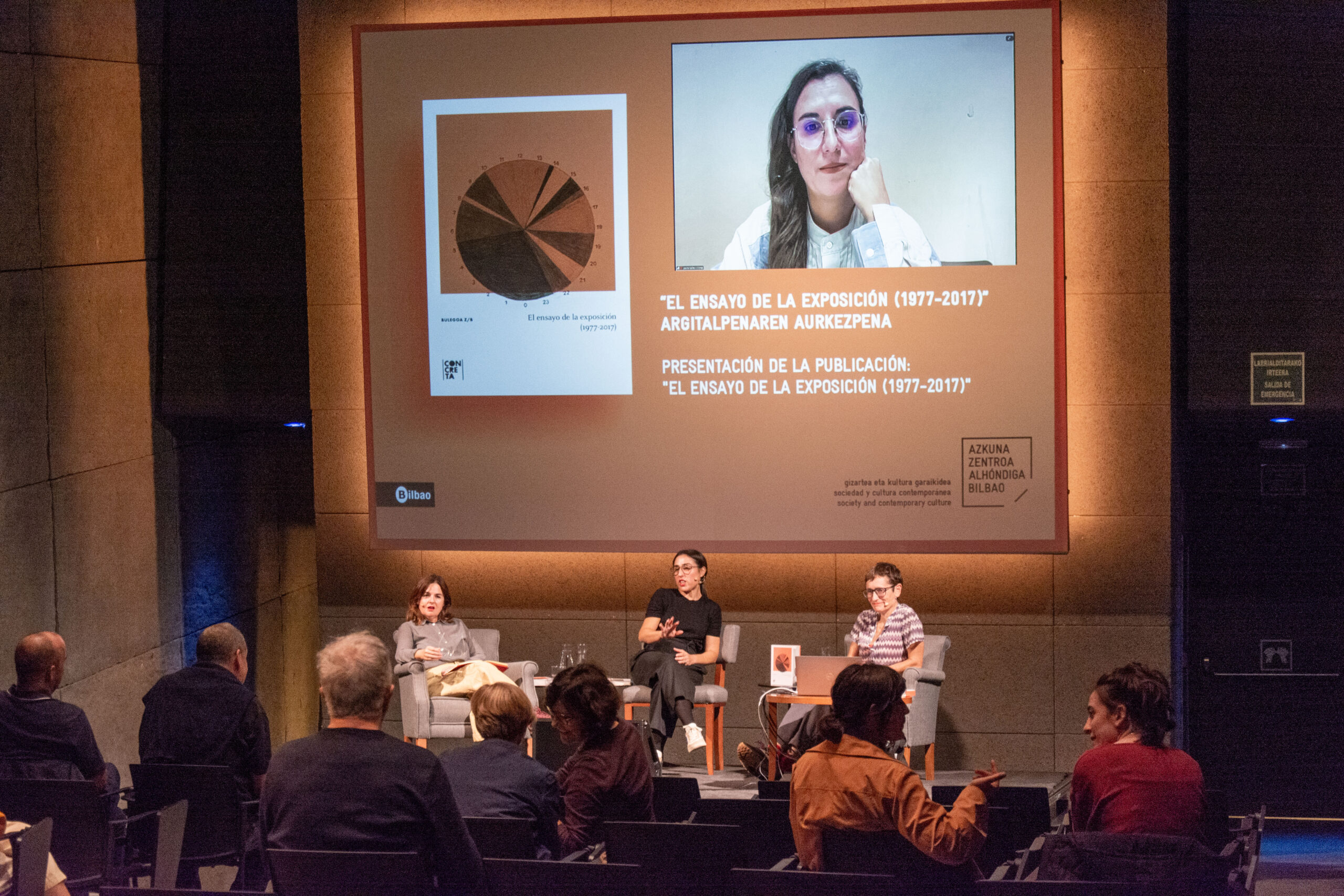 El simposio de comisariado El ensayo de la exposición (1977-2017) se desarrolló a través de cinco encuentros realizados entre 2016 y 2023 en Azkuna Zentroa – Alhóndiga Bilbao. Su objeto fue estudiar exposiciones de un período que abarca cuarenta años y en ellos se dieron cita más de una treintena de lecturas sobre otras tantas exposiciones de la historia reciente, permitiendo acercarse a diferentes aspectos de la exposición: objeto cultural que refleja y responde a las condiciones históricas en las que se produce, forma institucional que legitima las representaciones que acoge, dispositivo efímero susceptible de generar interrupciones y propiciar momentos de atención…